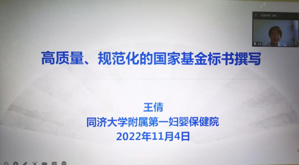11月4日上午,永利总站ylzz55在线举行了2023年国家自然科学基金申报培训会。本次培训会邀请了同济大学附属第一妇婴保健院科研科主任王倩教授作为专家进行国自然申报指导,永利总站ylzz55李延飞副院长主持会议。