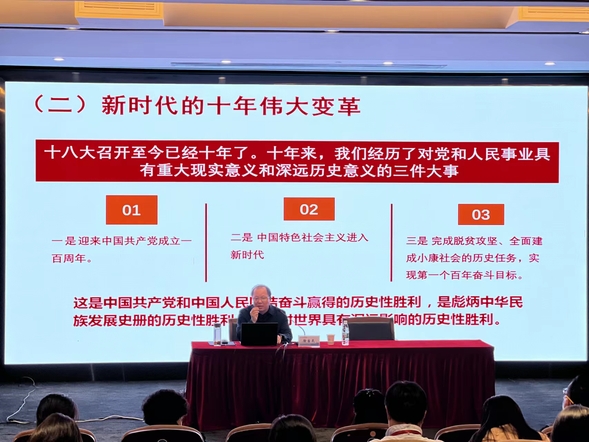 党的二十大精神十分丰富,既有政治上的高瞻远瞩和理论上的深邃思考,也有目标上的科学设定和工作上的战略部署。徐教授从深刻理解“关键时刻”这一时代背景、系统理解马克思主义中国化时代化理论成果、在全面对比中深化对党的二十大精神的理解等三个方法视角引导深入学习党的二十大精神内涵。