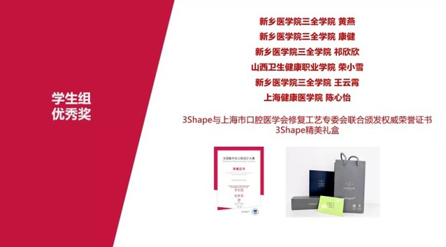 2022年年末,3Shape全国数字化口腔设计大赛决赛圆满落幕,为本次持续八个多月的比赛画上了句号。我院2019级口腔医学技术本科专业学生陈心怡经过初赛、复赛的层层选拔,最终入选了学生组全国十强,在决赛中获得优秀奖。