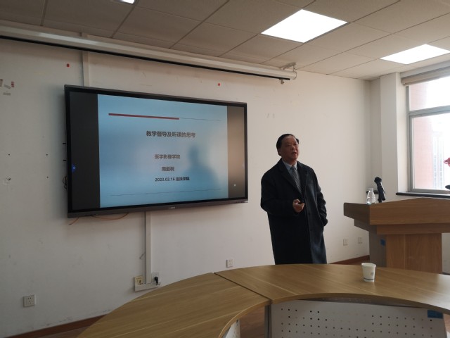 周进祝教授从教学督导在质量控制中的不同作用、督导听课听什么,怎么听,怎么写督导评价,以及对督导工作的反思几个方面入手,作了题为《教学督导及听课的思考》的专题报告;并结合自己对英语课程和实验课程督导案例,深入浅出地讲解了自己对教师教学设计、教学安排、教学内容、教学水平与效果等方面的督导,并提出了专业的教学建议;结合本科教学合格评估,周教授还特别强调院级督导工作科学、客观开展的必要性。