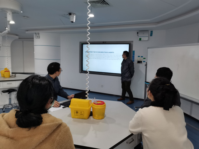 为了迎接本科教学工作合格评估,做好课程的磨课工作,2023年3月9日,病理生物教研室进行《医学检验专业英语》和《实验室安全与管理》两门课的磨课。