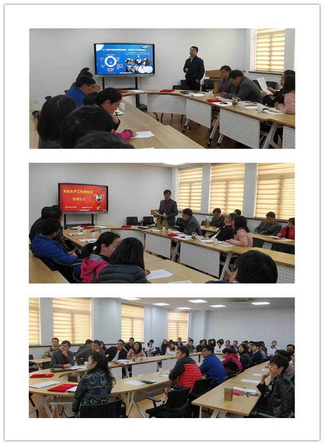 随后,永利总站ylzz55办公室主任苑国栋从保密工作、意识形态安全、财产人身安全、网络信息安全等方面传达了上周学校安全工作会议精神。接着,在全体教职工的见证下,学院党总支书记兼院长刘敏娟作为学院安全工作责任人分别与副院长陈林军、副院长李延飞、副书记高晓霞和学院安全员苑国栋老师签署了《安全生产工作责任书》和《2019年安全生产承诺书》,再由副院长和副书记分别与教研室主任、实验中心主任、辅导员签署责任书和承诺书,将安全意识、安全责任、层层传递,形成全员参与、齐抓共管的工作机制。