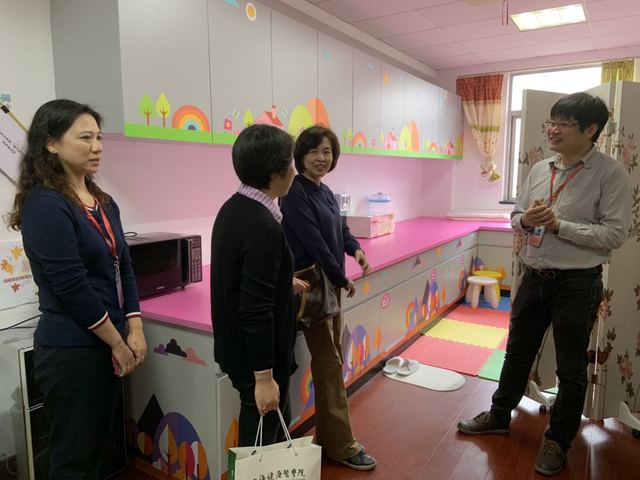 2019年5月15日上午,市总工会领导带领考核小组在校工会副主席芦静老师的陪同下到我校永利总站ylzz55的“妈咪小屋”进行实地考核。永利总站ylzz55党总支副书记高晓霞和学院工会主席陆俊杰老师为考核小组详细介绍了小屋的建设情况。