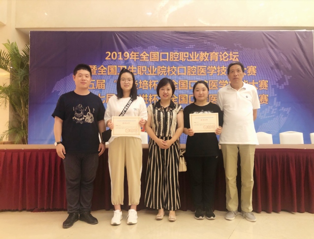 本次赛事规模盛大,来自全国67所院校共200余名学生参加了此次赛事。口腔医学技术专业主任周璟老师带队,学院王金伟老师、特聘教授周企文及2名2017级口腔医学技术专业学生参加了本次大赛。经过激烈角逐,张潇丹同学荣获全国卫生职业院校口腔技能大赛雕牙与排牙组二等奖、薛望楠同学荣获全国卫生职业院校口腔技能大赛雕牙与排牙组三等奖。