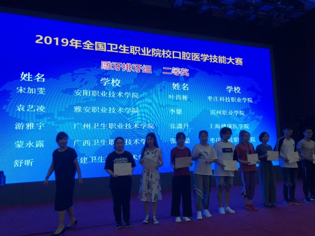由全国卫生职业教育教学指导委员会、中华口腔医学会口腔修复工艺学专业委员会、中华口腔医学会口腔修复学专业委员会、牙体牙髓病学专业委员会主办,日进齿科材料(昆山)有限公司协办,枣庄职业学院承办的2019年口腔职业教育论坛暨全国卫生职业院校口腔医学技能大赛于7月19日-7月21日在山东枣庄职业学院如期举行。