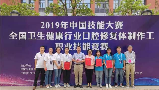 2019年6月下旬,在陈凤贞副院长的组织下,口腔专业全体教师统一思想、统一认识,积极组织学生参加竞赛。初赛阶段在专业老师王凯和行业专家周企文老师的悉心指导下,经专业初步评选共向上海赛区选送10件优秀学生作品参赛,最终我校3位选手入围学生组全国30强后。指导老师对决赛规则和赛事要求做了深入细致的分析,中秋国庆假期放弃休息,对入选决赛的选手进行理论与技能的集中培训。2019年10月11日,上海市卫生健康委人才交流服务中心袁明主任和永利总站ylzz55陈凤贞副院长率上海赛区入围的4位选手踏上决赛的征程。10月12日3位学生组选手凭借高强度、高技能、高职业素养,在4.5小时内完成了人机对话理论考核、一副全口义齿排牙和牙龈蜡型制作以及2个一倍大石膏牙雕刻共三项竞赛任务。最终经大赛组委会裁判组通过现场观察选手职业素养习惯、考核选手掌握的专业理论深度,17级口腔医学技术专业学生唐文文、谢嫣然同学在此次大赛上跻身全国15强,获得学生组优胜奖,同时获得了口腔修复高级工职业资格证书;上海市卫生健康委人才交流服务中心在此次大赛中被授予优秀团体奖。我校2007届口腔医学技术专业毕业生第九人民医院口腔技术中心的蔡晴文获得从业组优秀奖。