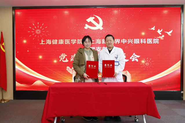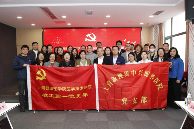 为深入学习贯彻党的二十大精神,扎实推进新时代基层党建高质量发展,4月3日下午,我院教工第一党支部与上海新视界中兴眼科医院党支部联合开展党建共建活动。本次活动以“资源共享、优势互补、协同发展”为宗旨,通过签约仪式、座谈交流、实地参观等形式,积极探索党建与业务深度融合新路径,着力构建医教协同发展新格局。