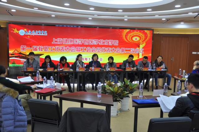 2018年1月22日,我校我院第一届教职工代表大会暨工会会员代表大会第二次会议举行。全体教代表共计31人出席了会议,大会由医技学院工会主席陆俊杰主持。副校长唐红梅、校工会副主席芦静老师到会祝贺并致辞。