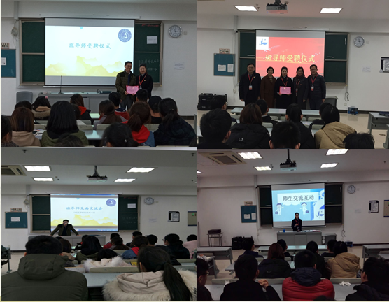 本次见面会是导师与学生一次近距离的心灵互动与交流。首先,学院领导给班导师汤磊副教授和刘敏娟副教授颁发了受聘证书。在交流会上,班导师分别通过自己独有的特色与学生分享自己的经验并与学生开展互动交流。