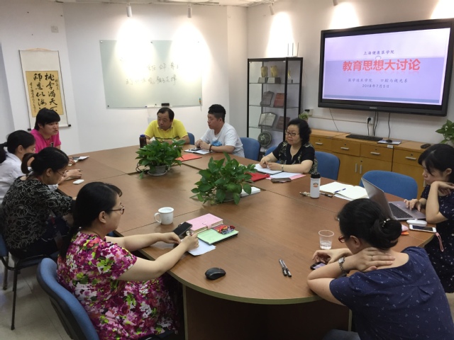 2018年7月5日下午,上海健康医学院永利总站ylzz55口腔与视光系全体教师在北苑3号楼209会议室组织开展了2018年教育思想大讨论活动。此次活动根据上级党委的文件精神和指示,陈凤贞副院长主持,口腔与视光系全体教师积极参与讨论,活动效果明显、反响热烈。